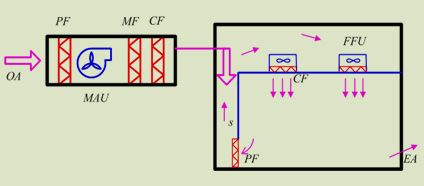 Fan Filter Units,中文意思為'風(fēng)機(jī)濾器單元(機(jī)組)'。也就是將風(fēng)機(jī)和過濾器(高效過濾器(HEPA)或超高效過濾器(ULPA))組合在一起構(gòu)成自身提供動(dòng)力的末端凈化設(shè)備。確切地說(shuō)是一種自帶動(dòng)力、具有過濾功效的模塊化的末端送風(fēng)裝置。風(fēng)機(jī)從FFU頂部將空氣吸入并經(jīng)HEPA過濾,過濾后的潔凈空氣在整個(gè)出風(fēng)面以0.45m/s±20%的風(fēng)速均勻送出。