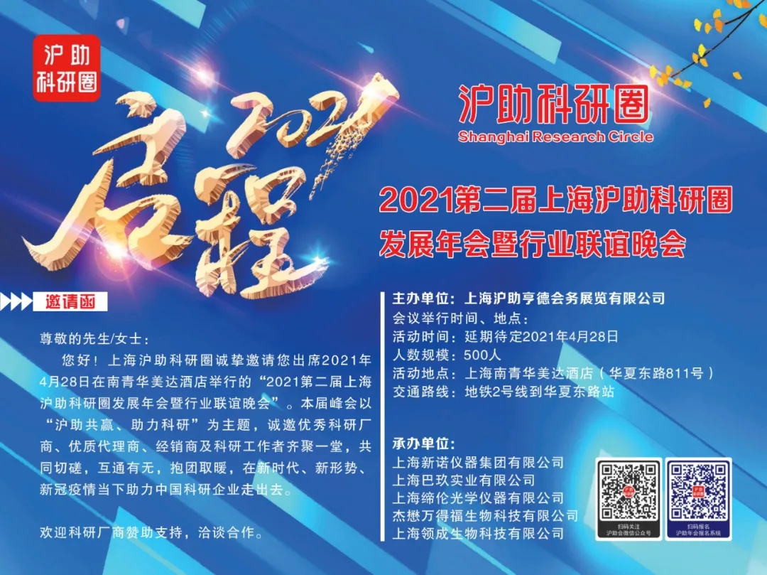 2021第二屆上海滬助科研圈發(fā)展年會(huì)暨行業(yè)聯(lián)誼晚會(huì)定于2021年4月28日在上海南青華美達(dá)酒店舉行。本屆峰會(huì)以“滬助共贏、助力科研”為主題,邀請(qǐng)了優(yōu)秀的科研廠商、優(yōu)質(zhì)代理商、經(jīng)銷(xiāo)商及科研工作者齊聚一堂,共同切磋,互通有無(wú),在新時(shí)代、新形勢(shì)、疫情當(dāng)下助力中國(guó)科研企業(yè)走出去...